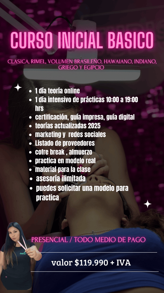 Curso inicial de extensiones de pestañas básico 1 día de teoría online 1 día intensivo de práctica en modelo real coffe break - almuerzo (día presencial) materiales para las clases no inclu...