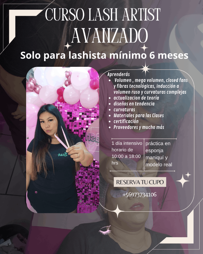 Curso Lash artist avanzado necesitas tener conocimiento en técnica clásica y rímel veremos técnicas de volumen y sus efectos curvaturas completas, actualización de teoría, nuevos efectos y tendenci...