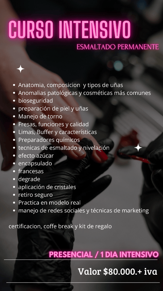 Curso inicial esmaltado permanente teorico y práctico aprenderas manicure mixta , técnicas de esmaltado, efectos, 3D, etc incluye certificación, coffe break- almuerzo y kit de regalo curso acríli...