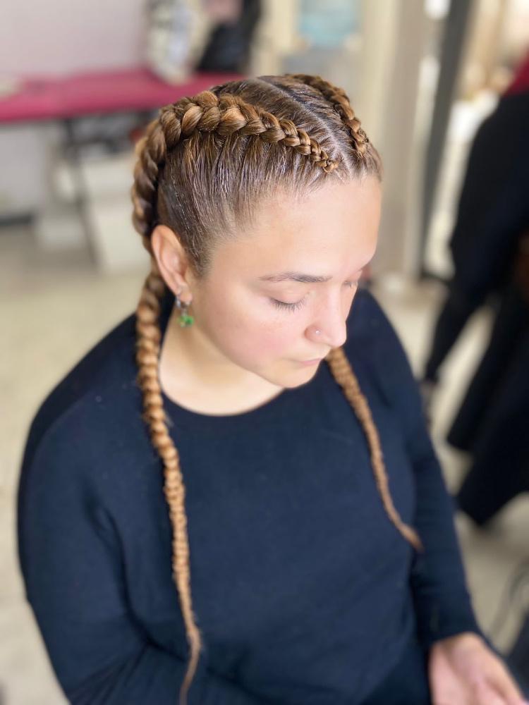 Trenzas básicas 2 a 4 trenzas zona de arriba, laterales o cintillos (no incluye decoración) trenzas sin decoración de 2 a 4 trenzas frontales o laterales con burbujas trenzas con decoración 2 a 6 t...